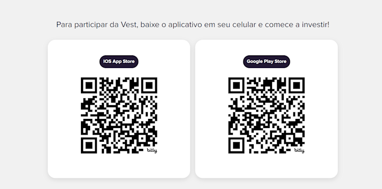 Acesse o site da Vest (https://vest.investments) ou encontre o aplicativo da Vest em sua loja de aplicativos. Se preferir, você pode usar este código QR: